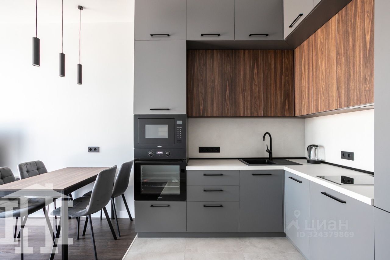 -Эргономичная кухня с удобным расположением рабочей зоны и достаточным местом для хранения, подчёркнутая современным дизайном