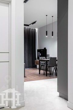 -Интерьер выполнен в светлой, воздушной палитре, что придаёт помещению лёгкость и простор