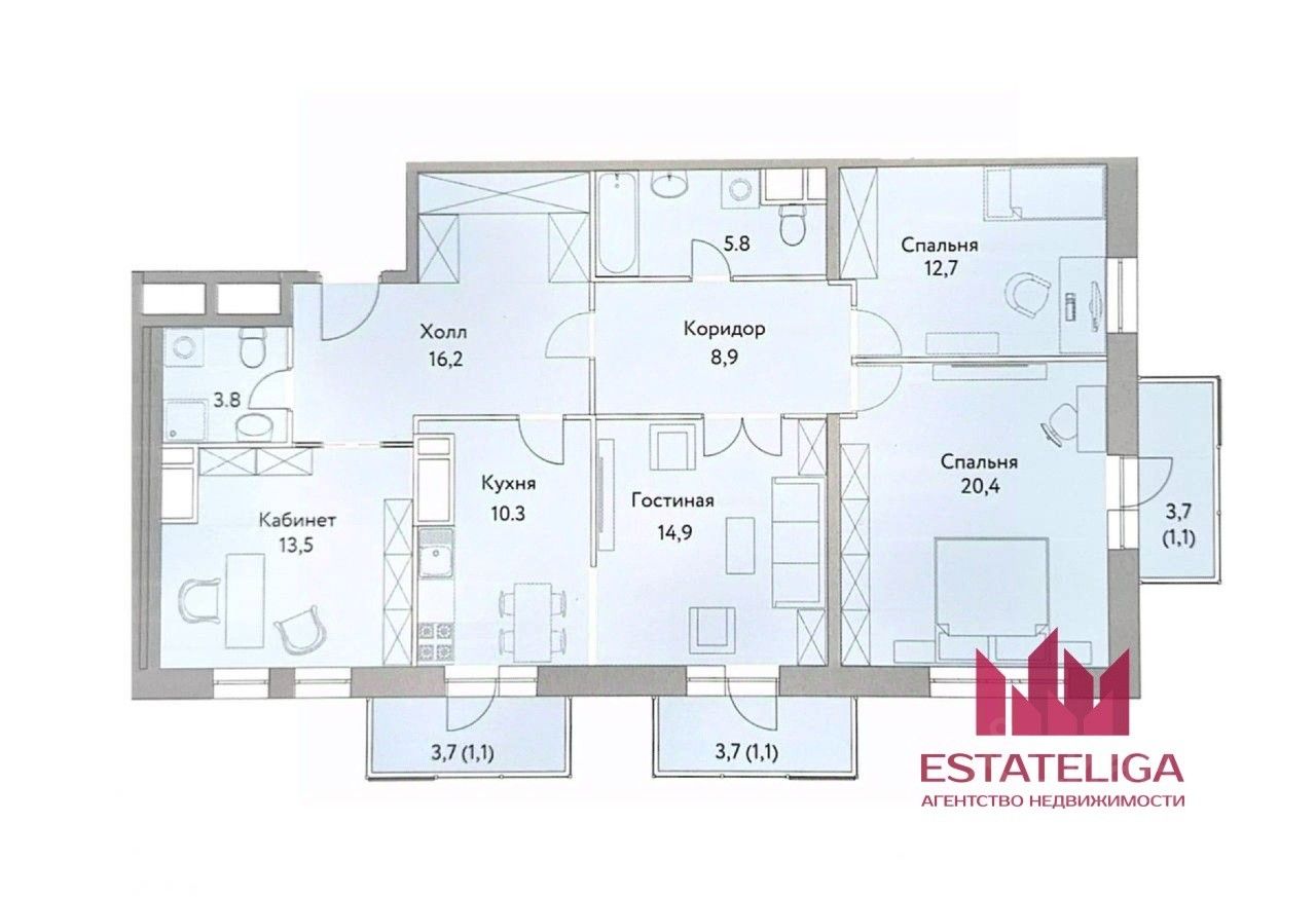 Планировка позволяет свободно спланировать пространство: большая кухня - гостиная, 3 спальни, одну из которой можно сделать мастер с своей личной гардеробной и санузлом, большая прихожая зона, кабинет, гостевой санузел и 3 полноценных балкона в каждой комнате! Окна выводят на улицу, обеспечивая отличное естественное освещение в течении дня.