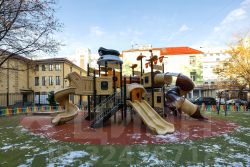 Ухоженный, тихий зеленый двор с детской и спортивной площадками.