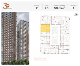 Продается двухкомнатная квартира в ЖК "Проспект 39" по адресу Москва, ЮВАО, Рязанский проспект, вл. 39, к. 2. Общая площадь квартиры - 50,80 кв.м., этаж 25. Стоимость квартиры - 21 760 825 р. Продаётся без отделки.