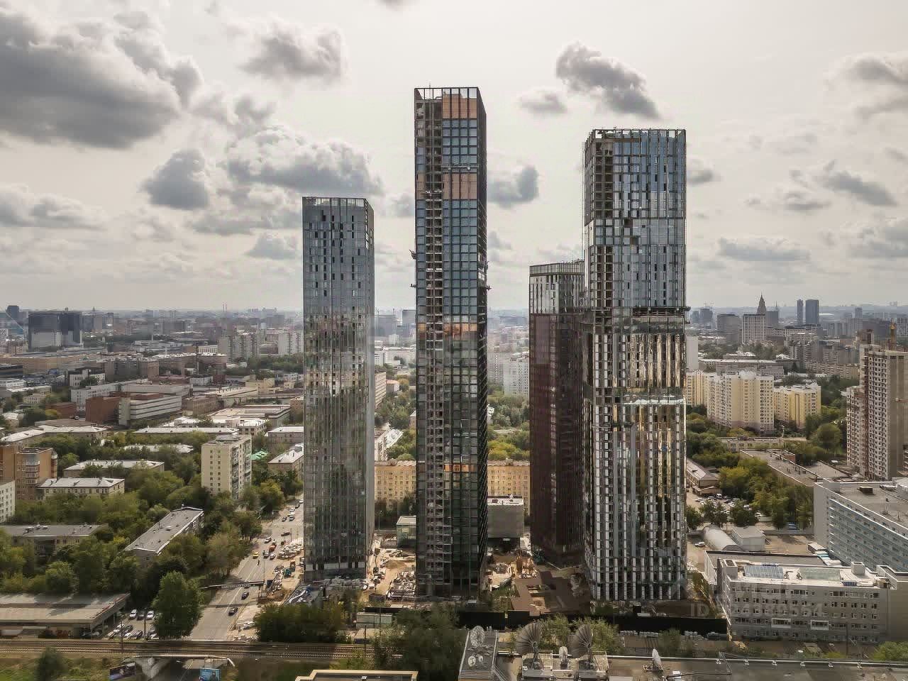 Высота обеспечивает абсолютную тишину и непрерывный вид на север Москвы через широкие панорамные окна. Планировка включает просторную кухню-гостиную, две изолированные комнаты и два санузла, что оптимально подходит как для приема гостей, так и для комфортной жизни семьи.