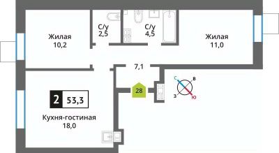 Двухкомнатная квартира (евротрешка) с просторной кухней-гостиной и двумя санузлами во второй очереди Смарт квартала "Лесная Отрада" — умное решение для комфортной городской жизни в окружении природы. Проектом предусмотрено все необходимое, чтобы жители могли вести привычный образ жизни, каждый день заряжаясь энергией природы и наслаждаясь чистым воздухом.