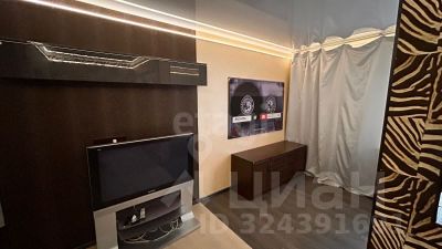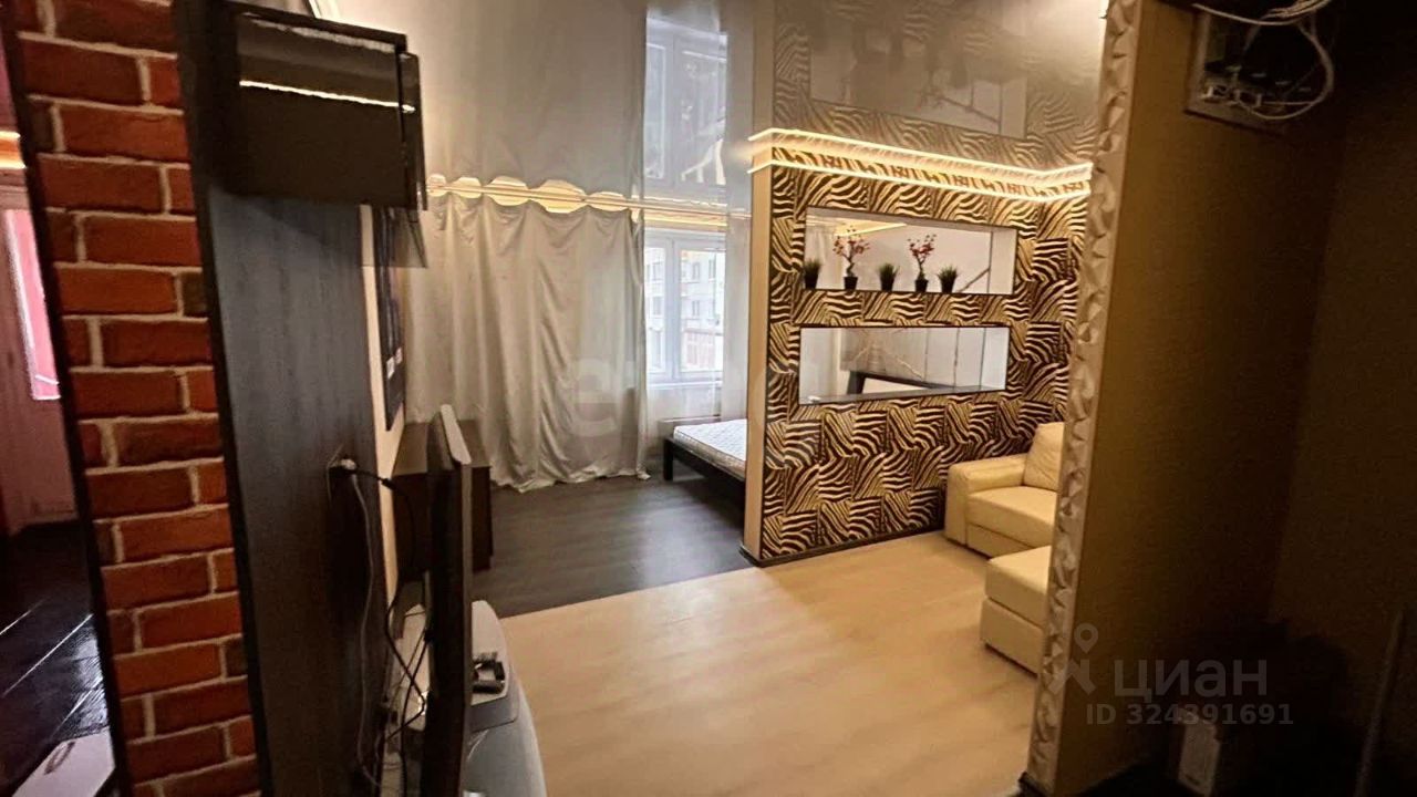 Просторная комната зонирована на две части, идеально подойдёт для комфортного проживания семьи или молодой пары.