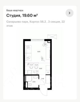 Продается видовая студия 19,6 кв.м в Москве, в ЖК "Саларьево Парк" в корпусе 56.2 на 22ом этаже 22х этажного монолитного дома. Студия с отделкой от застройщика ПИК. Уже идет передача ключей. Рядом с домом новые школа и детский сад. В шаговой доступности вся необходимая инфраструктура: сетевые магазины, кафе, салоны и пр. большой ТРЦ "Саларис", 5 мин.пешком до м. "Филатов Луг" и 15 мин до м. "Саларьево"). ЖК "Саларьево Парк" расположен рядом с лесопарковыми зонами и водоёмами: парк Филатов Луг, Дальний Пуд, река Сосенка. Прямая продажа, быстрый выход на сделку. Окажем содействие в получении специальных условий и преференций по ипотеке на покупку нашего объекта у наших банков партнеров.