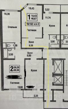 (Кухня-гостиная 16,8 кв.м с выходом на лоджию;Изолированная комната 20 кв.м;Изолированная комната 16,5 кв.м)