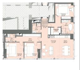 Комфортная планировка: мастер-спальня с собственной гардеробной и ванной комнатой; просторная кухня-гостиная; спальня - можно сделать как детскую, так и кабинет; гостевой санузел; спальня с собственной ванной комнатой. Комнаты соединены светлыми коридорами. Высокие потолки, ремонт выполнен из качественных импортных материалов. Отделка в ванных комнатах выполнена из керамогранита, импортная сантехника. В квартире проведена необходимая система для установки "Умный дом".