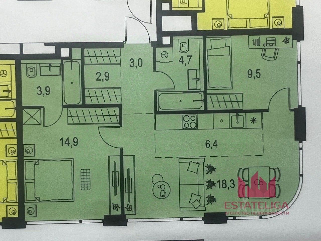 Вашему вниманию квартира в 6 корпусе формата евро-3 с закругленным угловым остеклением и видом на парк.