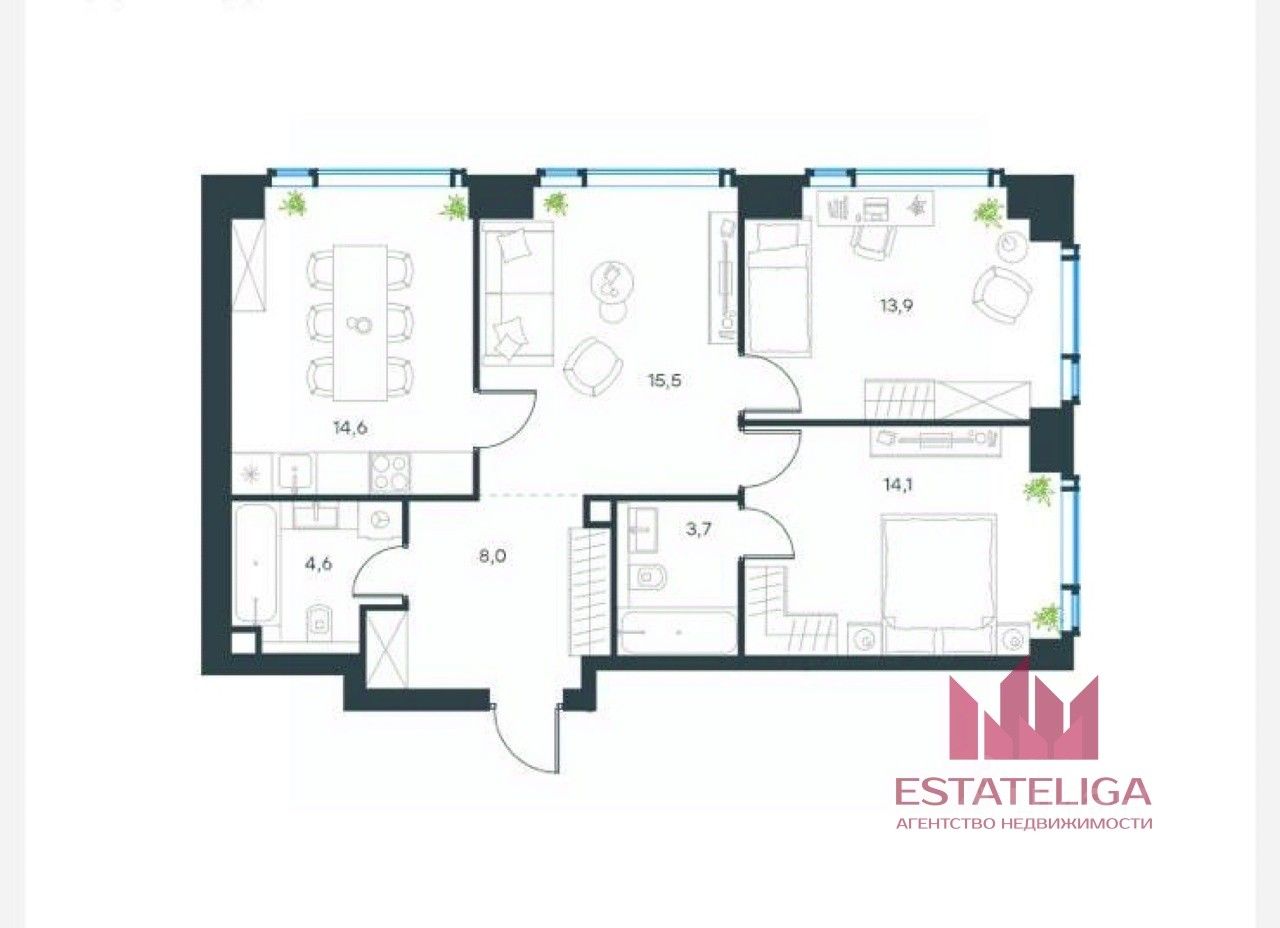 - функциональная планировка с просторной кухней-гостиной