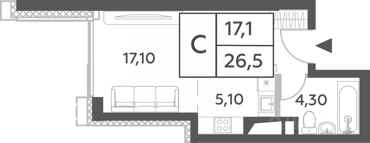 Общая площадь квартиры 25,6м2. Высота потолков 3,1 м. создают дополнительный простор, панорамные окна Schuco 2,7 м с предусмотренной функцией проветривания, наполнят вашу квартиру светом и свежим воздухом. Квартира-студия объединяет в себе две основные зоны, кухню и жилое пространство. Из квартиры открываются красивые виды на город . На каждом этаже есть технические балконы для установки системы кондиционирования VRV. На этаже расположены кладовые помещения.