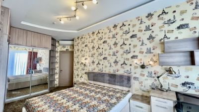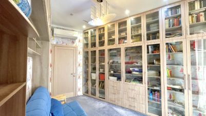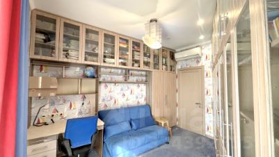 Планировка: кухня гостиная с встроенной бытовой техникой, 3 изолированные спальные комнаты с мебелью, 2 санузла, предусмотрено много зон хранения в встроенных шкафах во всех помещениях. Мебель и текстиль в комнатах в одной цветовой гамме, оборудованы шкафы для хранения книг. В квартире на полу ковролин, в тех местах где его нет предусмотрены теплые полы. Стоит система гидролок, защита от протечек.