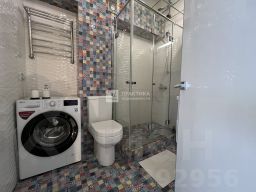 Совмещённый санузел: душевой угол, стиральная машина, дизайнерская отделка.