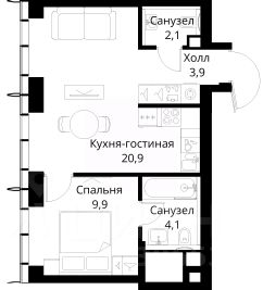 Продаётся 1-комнатная квартира общей площадью 40.90 м² без отделки в ЖК Сити Бэй, квартале Пасифик, на 25-м этаже 59 этажного дома.