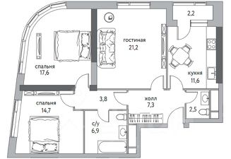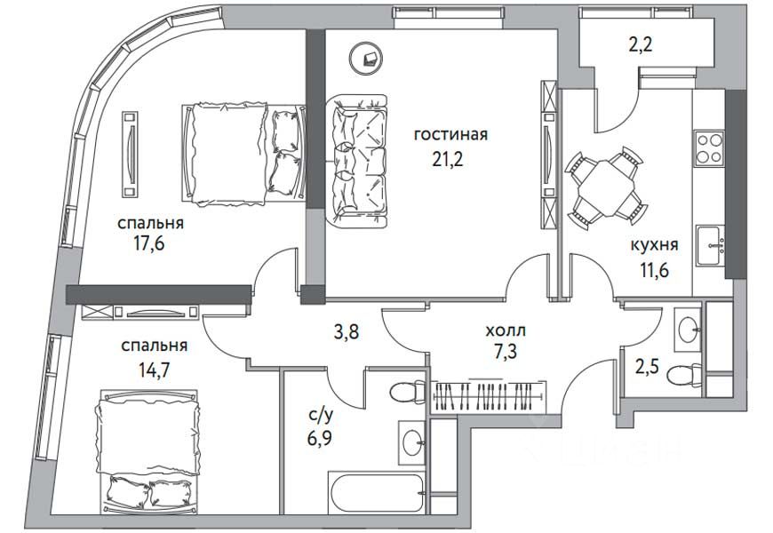3 комнаты, площадь 121 м². Стильная просторная квартира с функциональной планировкой, современными решениями и большим потенциалом для создания индивидуального интерьера.