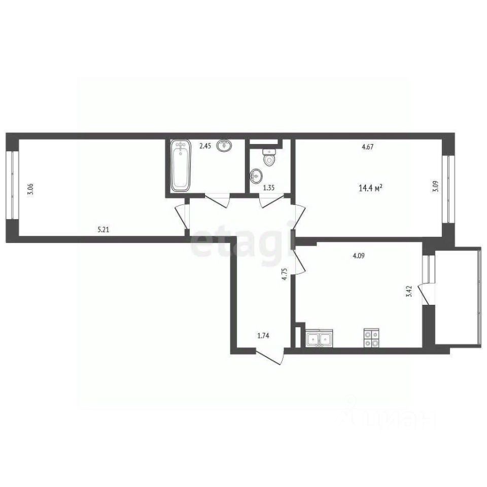 Площадь кухни составляет 13,5 м², что создает удобное пространство для организации обеденной зоны. Две изолированные комнаты с панорамными окнами ориентированы на разные стороны, обеспечивая постоянное естественное освещение и приятный вид. Выход на балкон площадью 4,2 м² расширяет полезное пространство квартиры.