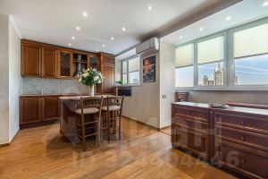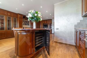 Кухонный гарнитур оборудован встроенным холодильником, посудомоечной машиной, винным шкафом, электрической варочной панелью и духовым шкафом.