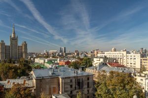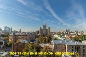 Панорамный вид из окон, выходящих на Запад, в том числе на Сталинскую высотку на Баррикадной.