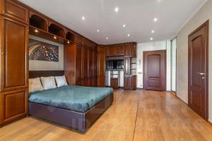 Вся корпусная мебель изготовлена на заказ в Италии, из натурального дерева.