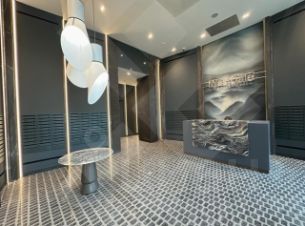 Авторский дизайн лобби в башнях от бюро OLEG KLODT ARCHITECTURE&DESIGN и Лейлы Улуханли. Дизайн центрального лобби от бюро SUNDUKOVY SISTERS.