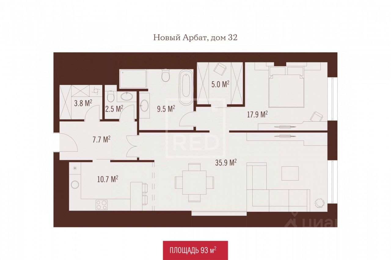 Площадь апартамента 93 м², полностью меблирован и оснащен современной техникой. Готов для комфортной жизни с первых дней.