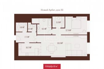 Арт. 126285765 Двухкомнатный апартамент с дизайнерским ремонтом, на 5-м этаже в ЖК "Звёзды Арбата"