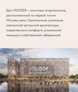Продам по переуступке видовую студию с ремонтом на 3 этаже в ЖК INSIDER — комплекс апартаментов, расположенный на первой линии Москвы - реки. Гармоничное сочетание элегантной авторской архитектуры, современного комфорта, уникальной локации и собственной набережной.