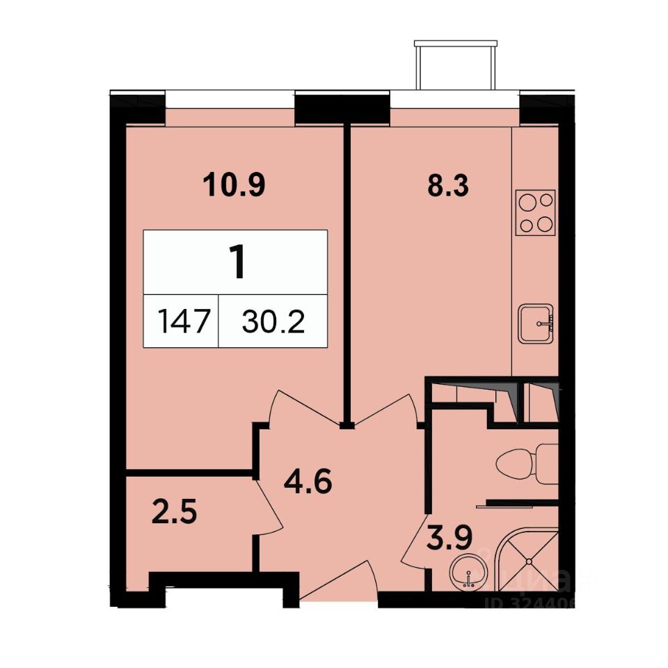 Просторная 1-комнатная квартира 30 м2 в современном апарт-комплексе "Легендарный квартал".