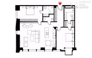 Планировка включает в себя просторную кухню-гостиную, хозяйскую мастер-спальню со своей гардеробной и ванной комнатой, ещё одну уютную спальню, гостевой санузел и постирочную. Квартира предлагается с премиальной отделкой в стиле неофактура.
