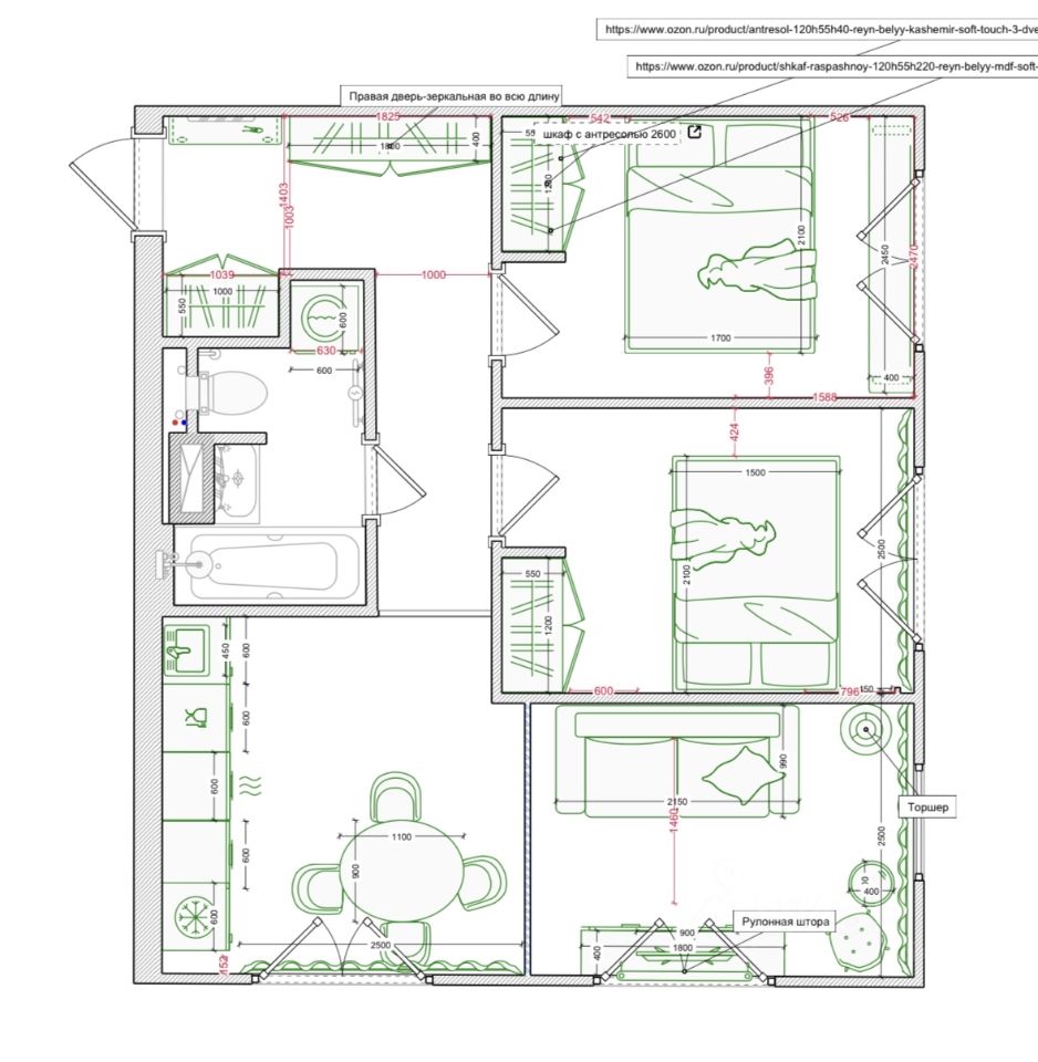 Вся квартира укомплектована мебелью с декором, одна комната свободна под Ваш индивидуальный функционал (по плану возможна еще одна спальня или кабинет, по выводам электрики и освещения)