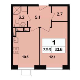 Комната - 12 кв. м и просторная кухня - 10 кв. м.