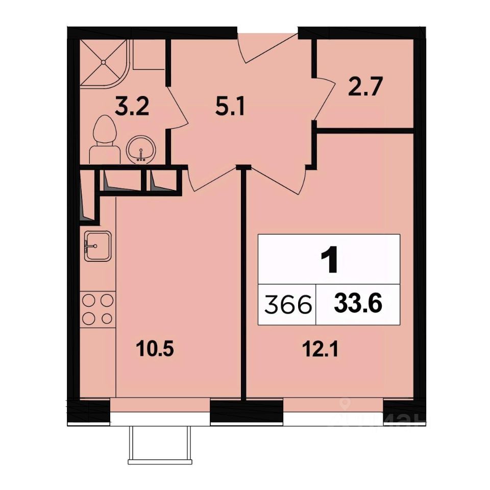 Просторная 1-комнатная квартира 33,6 м2 в современном апарт-комплексе "Легендарный квартал".