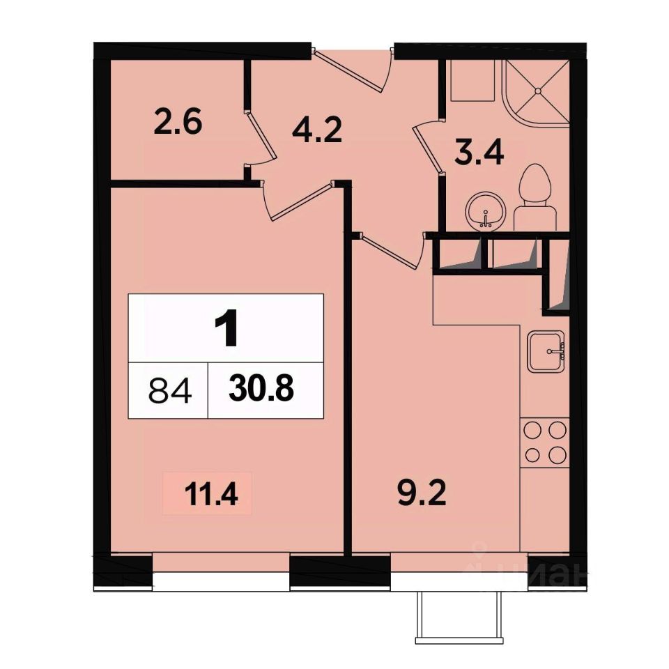 Просторная 1-комнатная квартира 31 м2 в современном апарт-комплексе "Легендарный квартал".