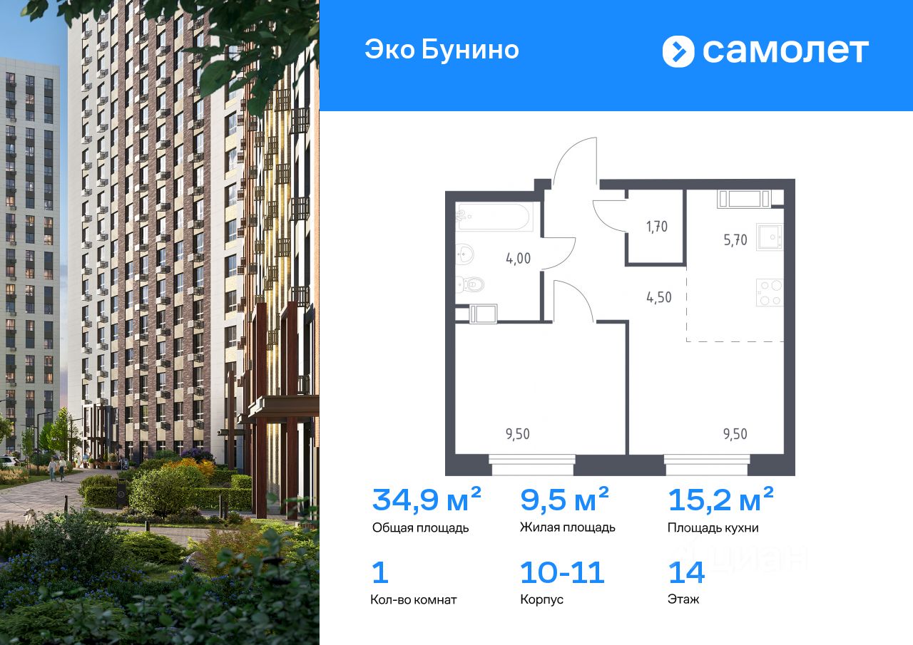 Строим кварталы для жизни с заботой о будущем. Предлагается 1-комнатная квартира комфорт-класса 34,9 кв.м в корпусе 10-11 на 14 этаже, в ЖК "Эко Бунино"