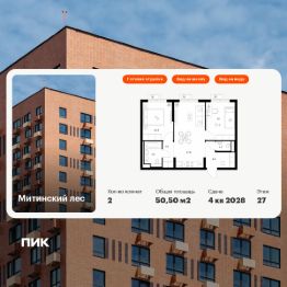 Продаётся 2-комн. квартира площадью 50,5 кв.м на 27 этаже 27 этажного дома (Корпус 14, Секция 5) проекта ПИК Митинский лес. Светлый просторный подъезд на уровне земли, функциональная планировка, большие окна, c отделкой.