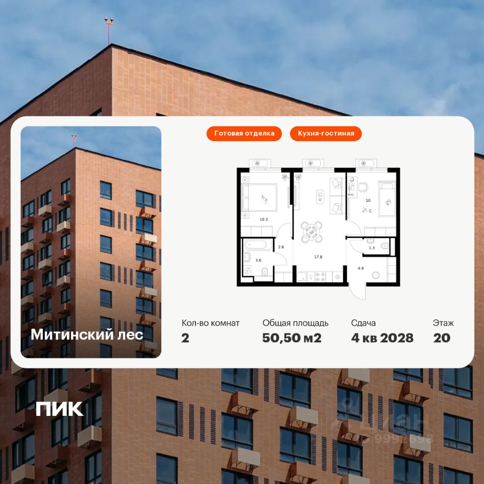 Продаётся 2-комн. квартира площадью 50,5 кв.м на 20 этаже 27 этажного дома (Корпус 14, Секция 5) проекта ПИК Митинский лес. Светлый просторный подъезд на уровне земли, функциональная планировка, большие окна, c отделкой.
