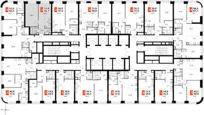 Продаётся 2-к квартира номер 355 общей площадью 46.7 кв.м. на 25-м этаже 46 этажного здания. Отделка Whitebox. Цена с учётом скидки.