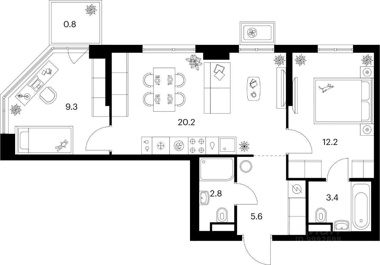 Продаётся 2-комн. квартира площадью 54,3 кв.м на 7 этаже 23 этажного дома (Корпус 3.3, Секция 3) проекта ПИК Кавказский бульвар 51. Светлый просторный подъезд на уровне земли, функциональная планировка, большие окна, c отделкой.