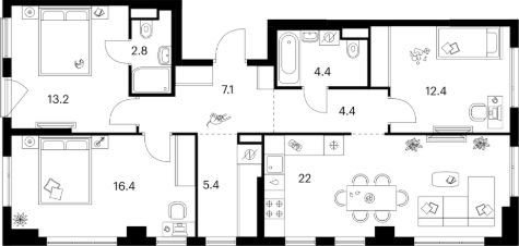 Продаётся 3-комн. квартира площадью 88,1 кв.м на 4 этаже 9 этажного дома (Корпус 3.4, Секция 1) проекта ПИК Кавказский бульвар 51. Светлый просторный подъезд на уровне земли, функциональная планировка, большие окна, предчистовая отделка.