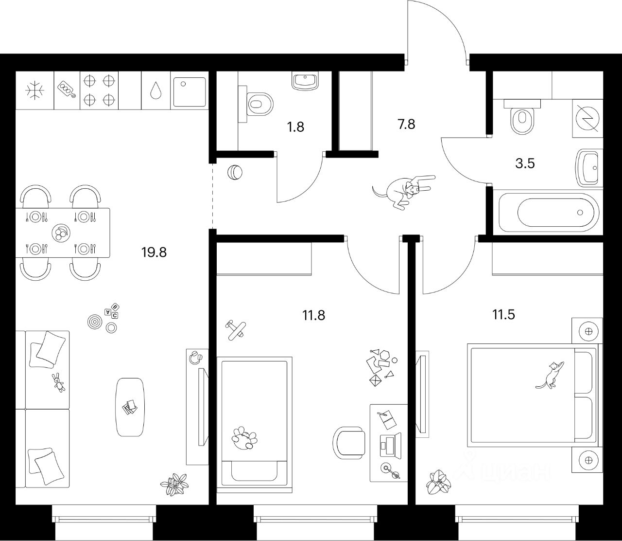 Продаётся 2-комн. квартира площадью 56,2 кв.м на 33 этаже 45 этажного дома (Корпус 1.4, Секция 1) проекта ПИК Полар. Светлый просторный подъезд на уровне земли, функциональная планировка, большие окна, c отделкой.