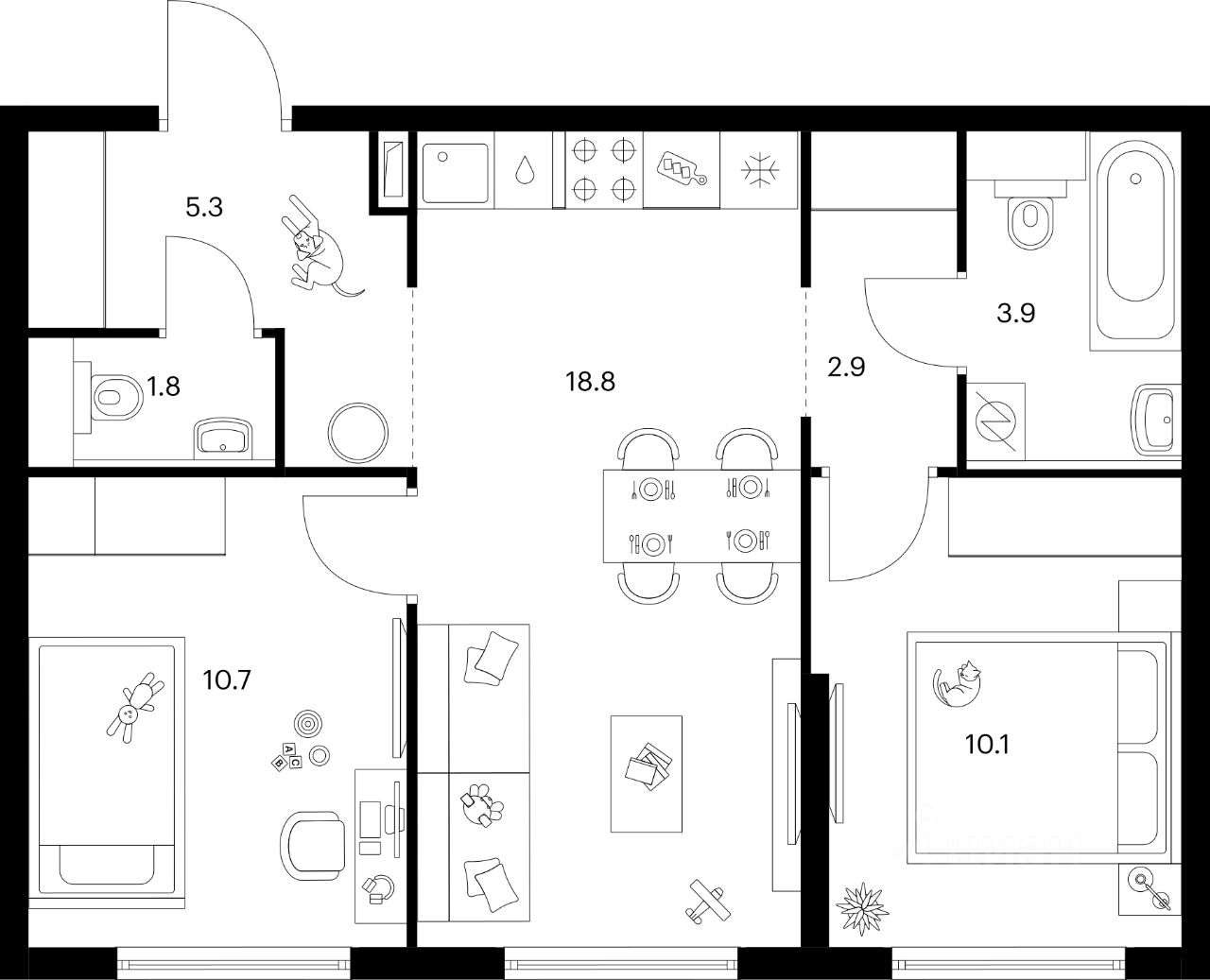 В "Кронштадтском 9" умные планировки: вы сами выбираете, как их использовать, чтобы ваша квартира была максимально комфортной именно для вас. Например, постирочная может стать студией звукозаписи, а зона для гардероба — кабинетом. В новых корпусах есть квартиры с кухней-нишей, сквозным санузлом и мастер-спальней с собственной ванной.