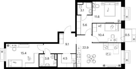 Продаётся 3-комн. квартира площадью 86,9 кв.м на 3 этаже 19 этажного дома (Корпус 4.4, Секция 4) проекта ПИК Амурский парк. Светлый просторный подъезд на уровне земли, функциональная планировка, большие окна, c отделкой.
