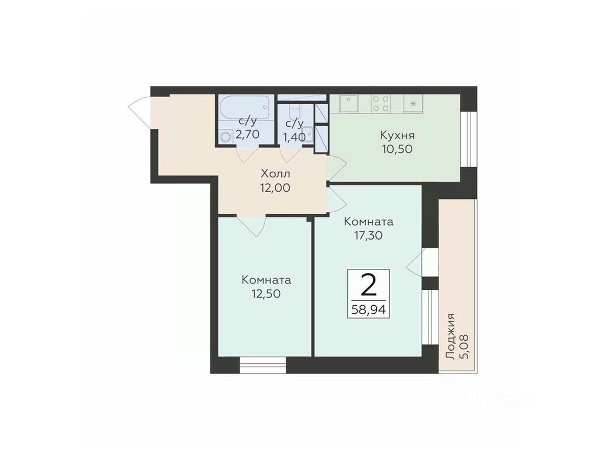 Продается 2-комнатная квартира площадью 58.94 с отделкой White box. Квартира расположена на 17 этаже 17 этажного дома, в 203 корпусе.