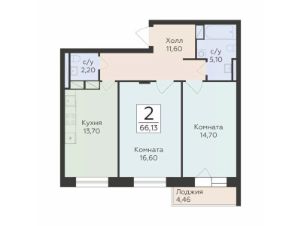 Продается 2-комнатная квартира площадью 66.13 с отделкой White box. Квартира расположена на 4 этаже 17 этажного дома, в 201 корпусе.