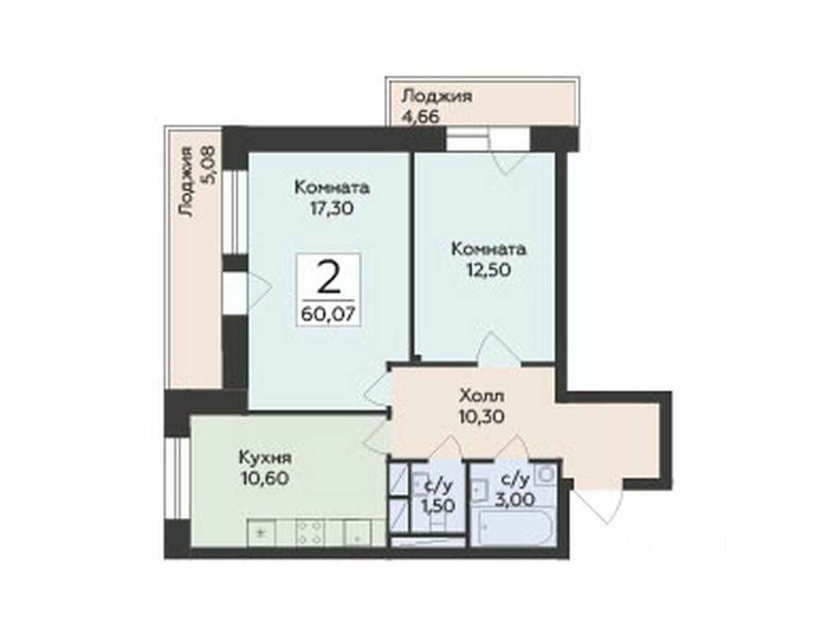 Продается 2-комнатная квартира площадью 60.07 с отделкой White box. Квартира расположена на 4 этаже 17 этажного дома, в 201 корпусе.