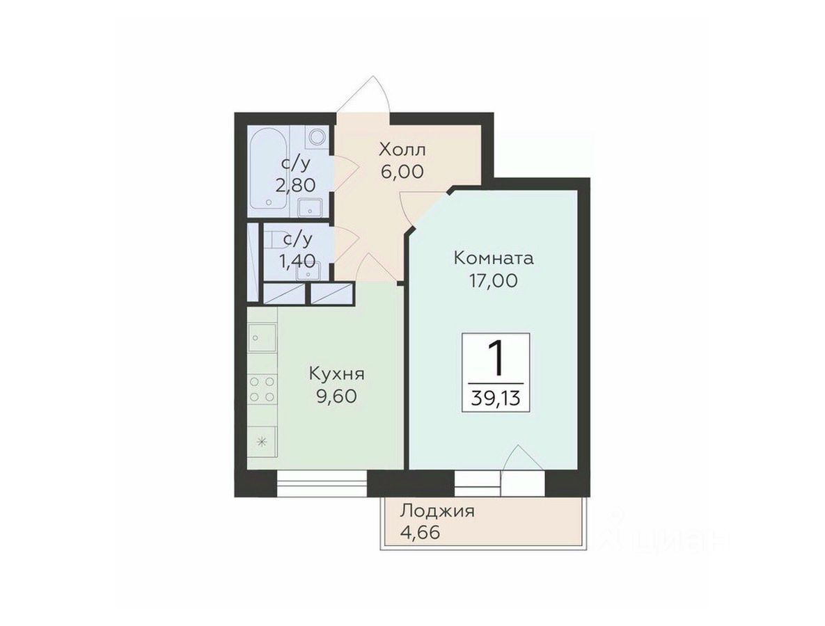 Продается 1-комнатная квартира площадью 39.13 с отделкой White box. Квартира расположена на 4 этаже 17 этажного дома, в 202 корпусе.