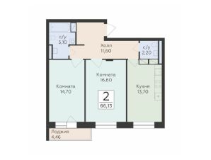 Продается 2-комнатная квартира площадью 66.13 с отделкой White box. Квартира расположена на 4 этаже 17 этажного дома, в 202 корпусе.