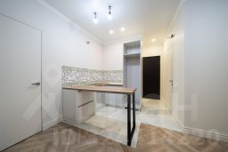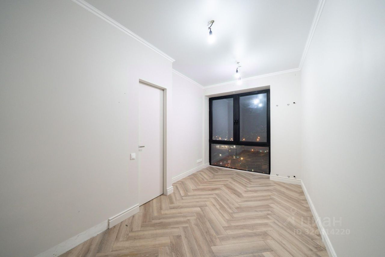 Двухкомнатная квартира общей площадью 52 квадратных метра на 13-м из 30 этажей. Комнаты 10,1 и 7,4 м², кабинет с окном 4,6 м², комната свободного назначения 5,1 м² кухня 17,6 м², с/у совмещенный 6,4 м². Три окна в пол с панорамным видом выходят на юго-восток. Высокие потолки 2,8 м. Отличное состояние квартиры. Коридор, кухня и с/у в керамогранитной плитке. В комнатах паркетная доска.