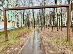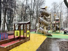 Во дворе прогулочные зоны, новые детский и спортивные площадки, хоккейная коробка и пр.