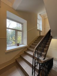 Квартира расположена на втором жилом этаже (фактически-уровень 3-его) 11-этажного дома 1956 года постройки. Общая площадь — 59,2 квадратных метров, из которых 38.6 квадратных метров приходится на жилую площадь. Высота потолков —3 метра, консьерж. Один собственник, полная стоимость в договоре, юридически (никто не зарегистрирован) и физически свободна.