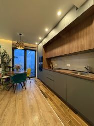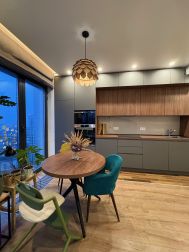 - Просторная кухня-гостиная с французским балконом и панорамным остеклением.